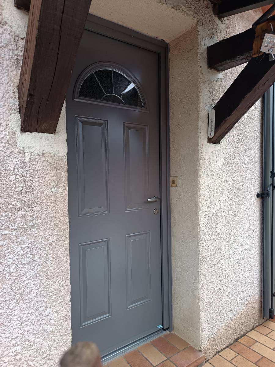 L'entreprise Cevenn Menuiserie a récemment réalisé la pose de cette porte d'entrée en acier gris clair, alliant sécurité, modernité et élégance.